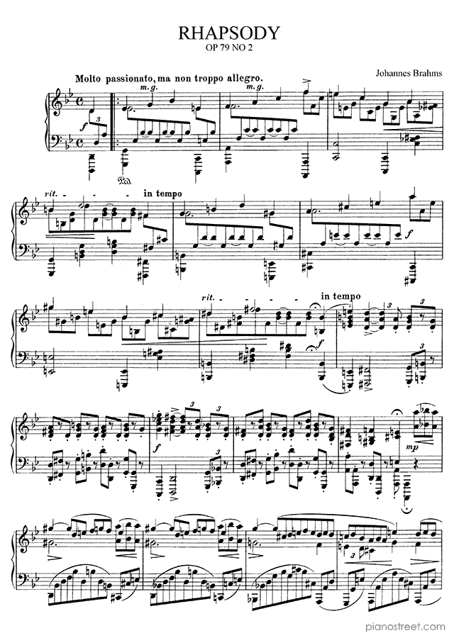 Rhapsody Op. 79 No. 2 in G Minor, a composition by the early romantic composer Johannes Brahms. The piano score of this piece was first published in 1880 and is part of Two Rhapsodies by Brahms.