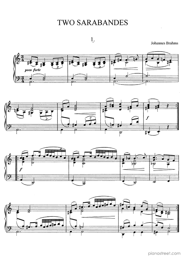 Classical piano sheet music by Brahms to download: Two Sarabandes in the key of This piece has difficulty level 7 in the category Piece
