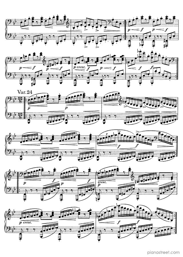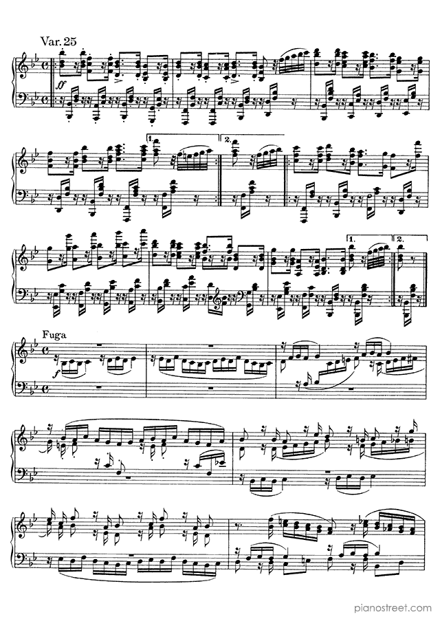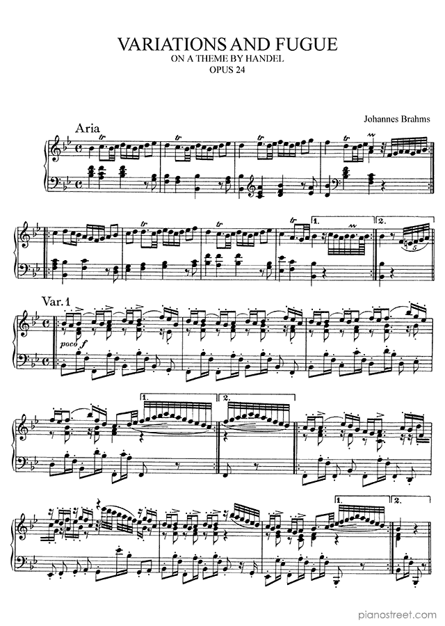 Variations and Fugue on a Theme by Handel in B-flat Major Op. 24 by Johannes Brahms. Sheet music and recordings of thousands of piano pieces by Johannes Brahms and many other famous composers to view in your digital device, print out or listen to.