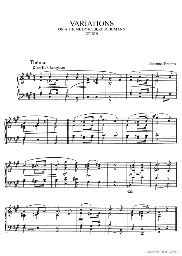 DOWNLOAD Variations on a theme by Robert Schumann in F-sharp Minor Op. 9 by Johannes Brahms (published in 1854) . High quality classical piano scores from the Piano Street sheet music library.