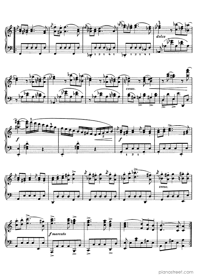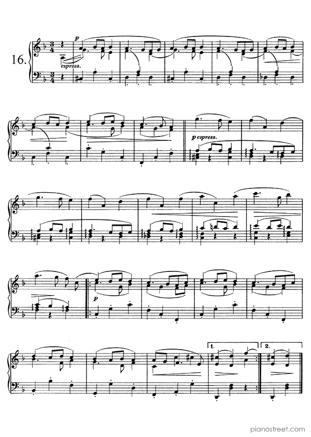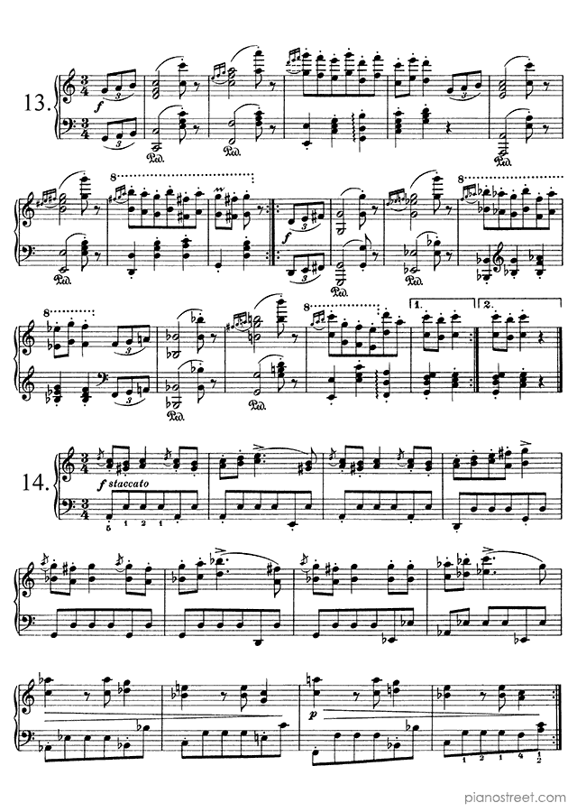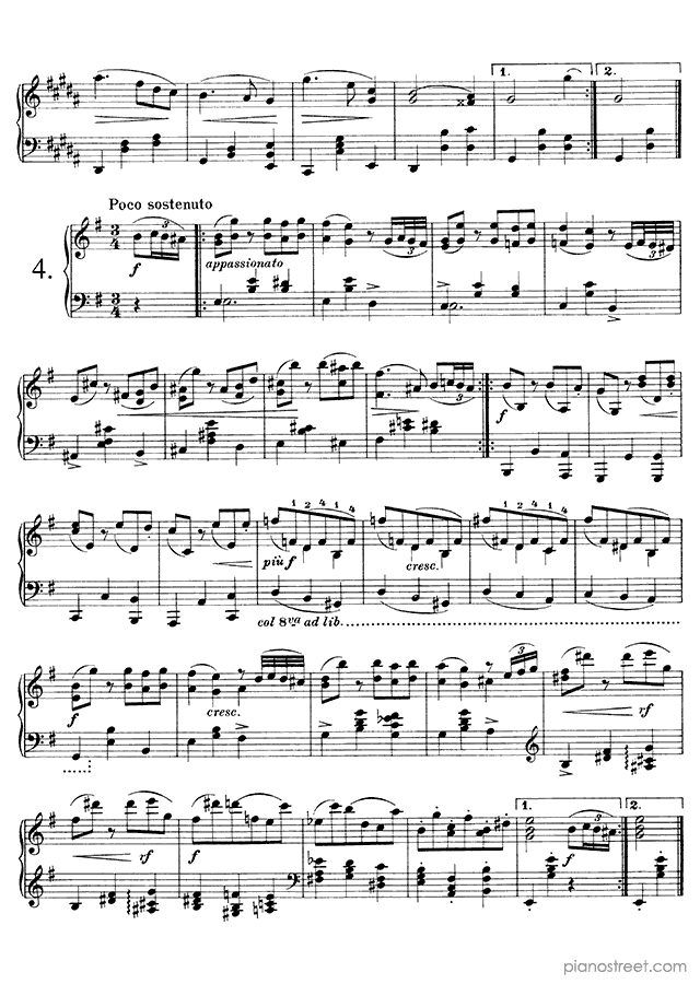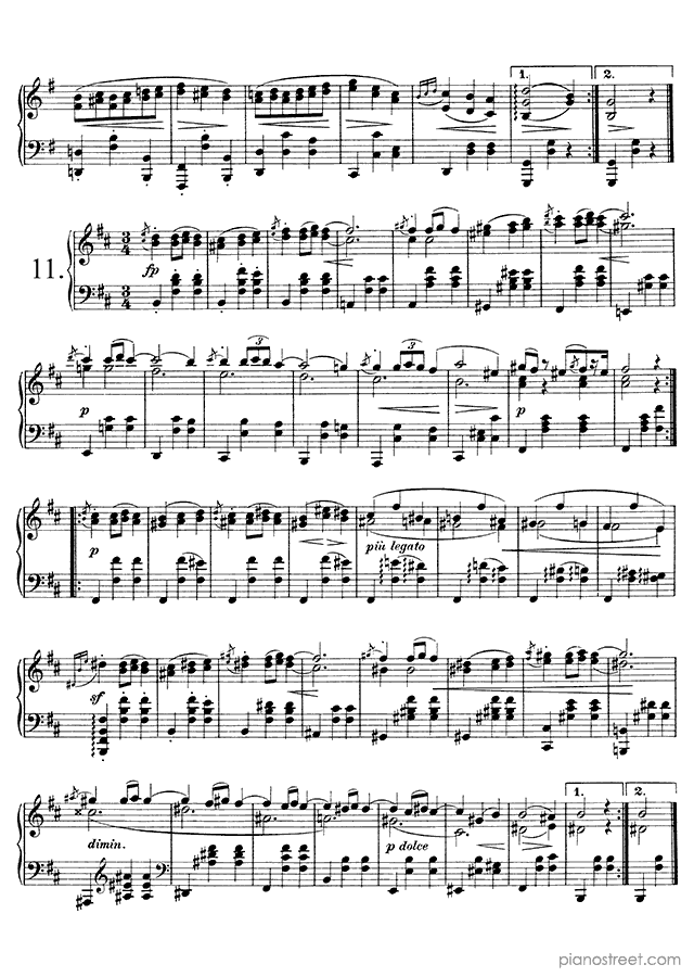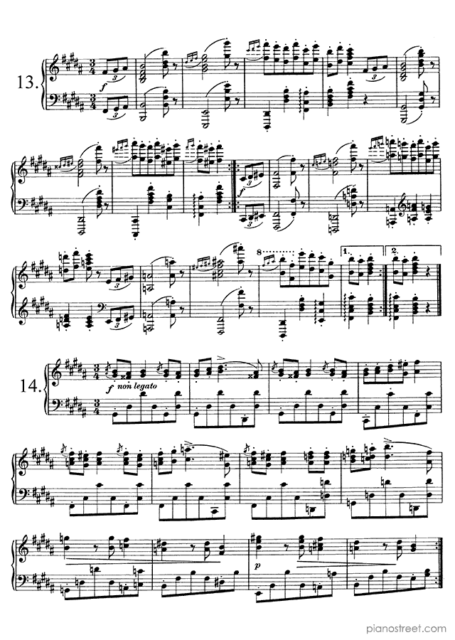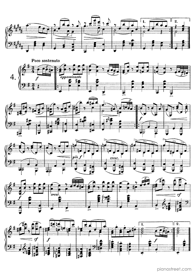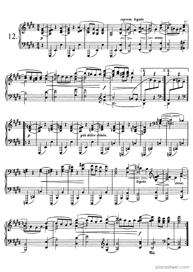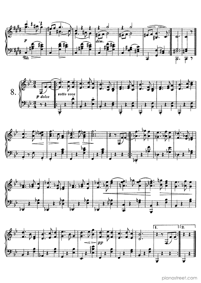 Downloadable piano sheet music from Waltzes (solo piano) by Johannes Brahms to print: Waltz Op. 39 No. 6 in C-sharp Major (published in 1865)