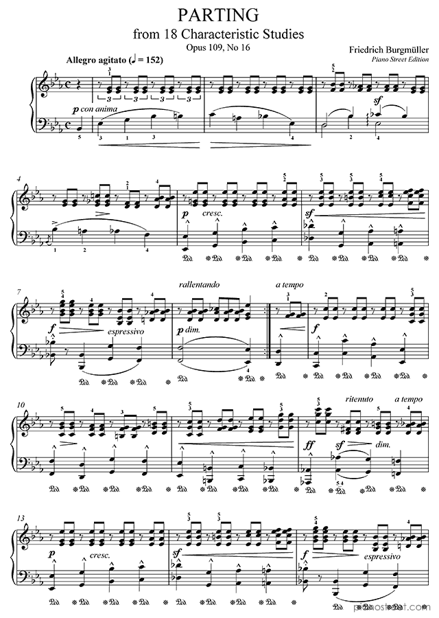 DOWNLOAD Parting in E-flat Major Op. 109 No. 16 by Friedrich Burgmüller. High quality classical piano scores from the Piano Street sheet music library.