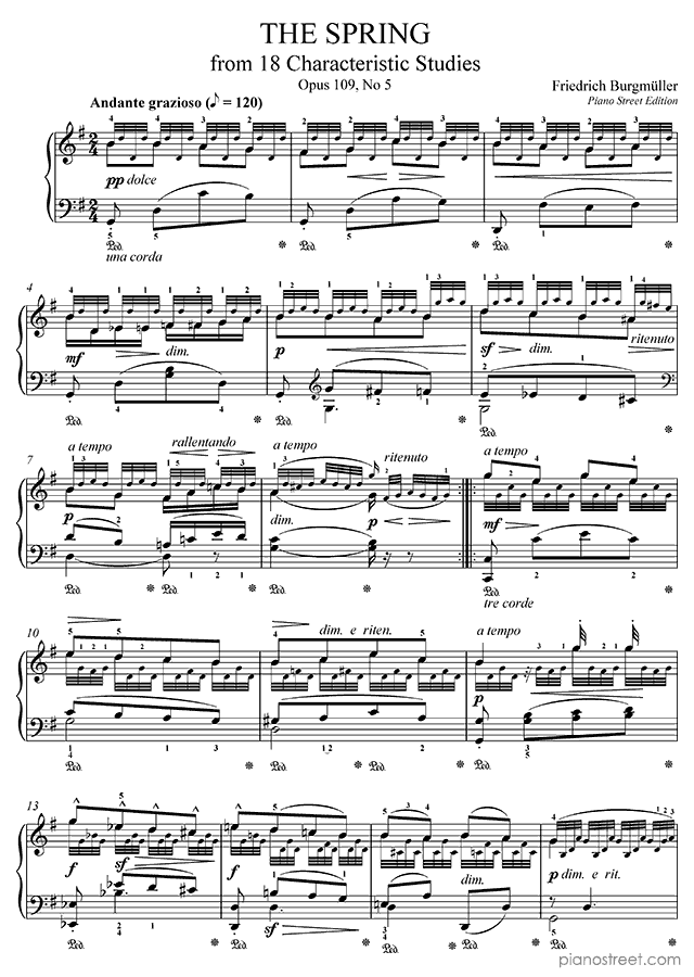 DOWNLOAD: Friedrich Burgmüller - The Spring Op. 109 No. 5 in G Major ( from 18 Characteristic Studies by Burgmüller). Piano sheet music to print immediately or to view in mobile devices.