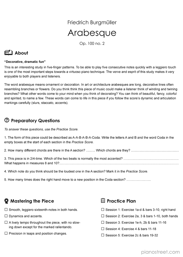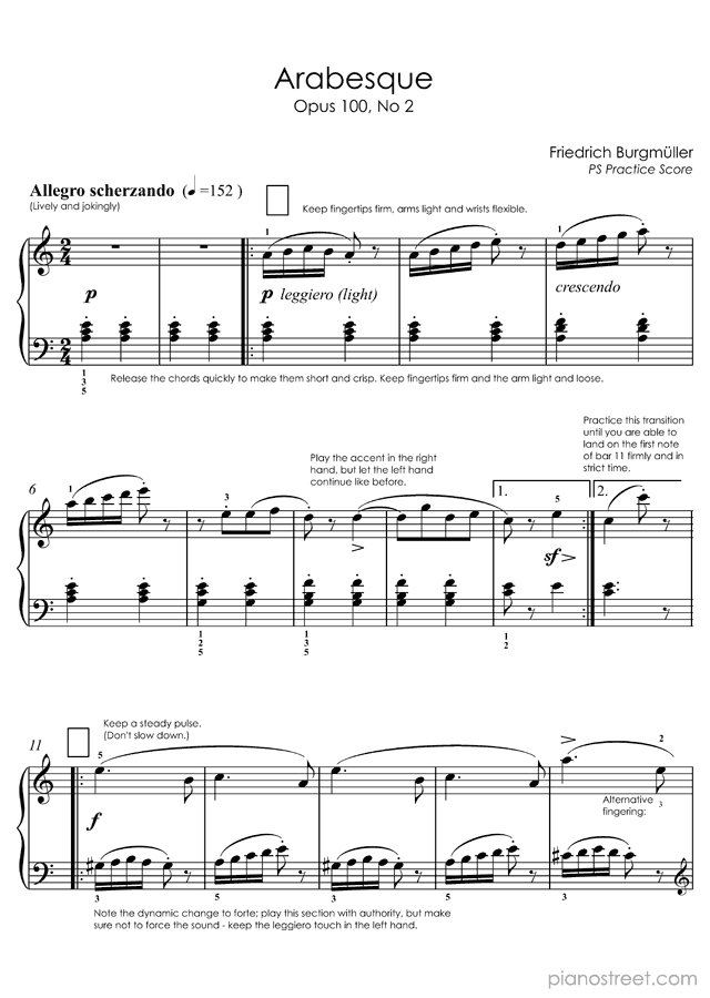 This piece belongs to Friedrich Burgmüller's set of 25 Easy and Progressive Studies, one of the most widely used educational works in the repertoire.Practice & Performance Tips: