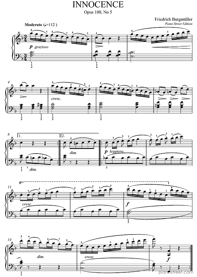 Burgmüller: Innocence Op. 100 No. 5 in C Major . DOWNLOAD piano sheet music from Piano Street digital sheet music library.