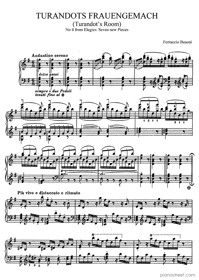 Modern piano sheet music by Ferruccio Busoni to download and print instantly: Turandots Frauengemach No. 4 in the key of . Level 8+, composition type: Piece (published in 1907)