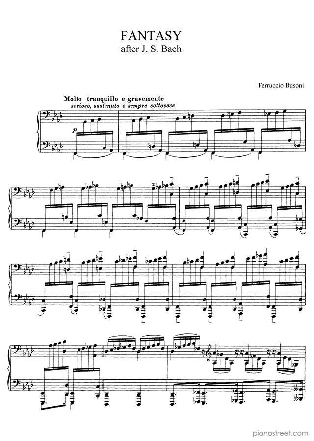 Fantasy after J. S. Bach in F Minor - is a piano piece by the modern composer Ferruccio Busoni who lived between the years 1866 and 1924.