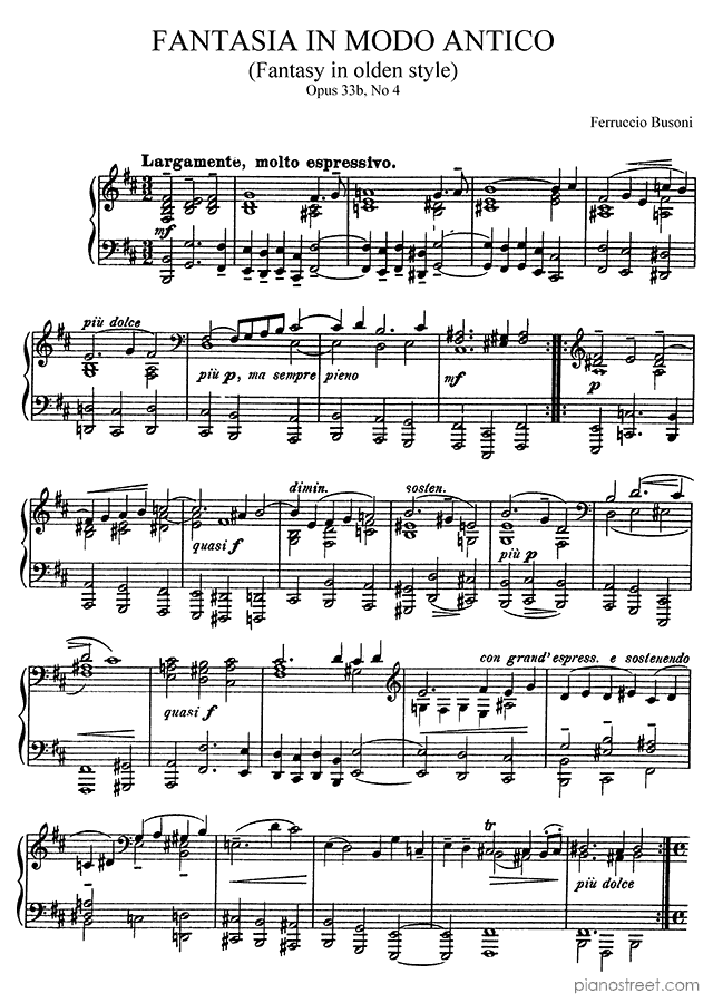 Fantasia in modo antico in B Minor - Op. 33 No. 4 is a piano piece by the modern composer Ferruccio Busoni who lived between the years 1866 and 1924.