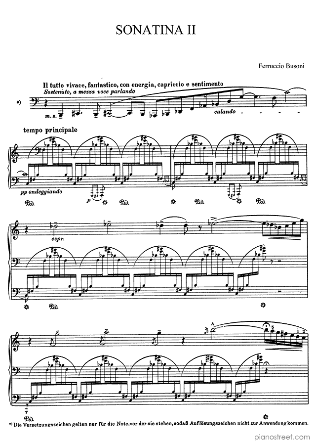 This piece is composed by Ferruccio Busoni and was published in 1912. Title: Sonatina, No. 2 from Sonatinas. The difficulty level is around ABRSM grade 8+ and it belongs to the Modern period.