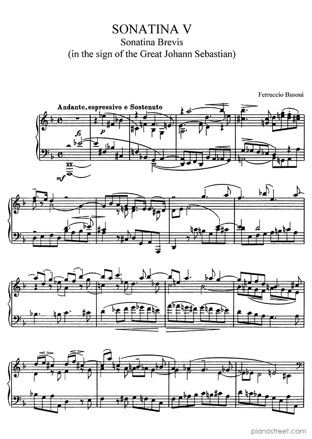 Sonatina - No. 5 is a piano piece by the modern composer Ferruccio Busoni who lived between the years 1866 and 1924.