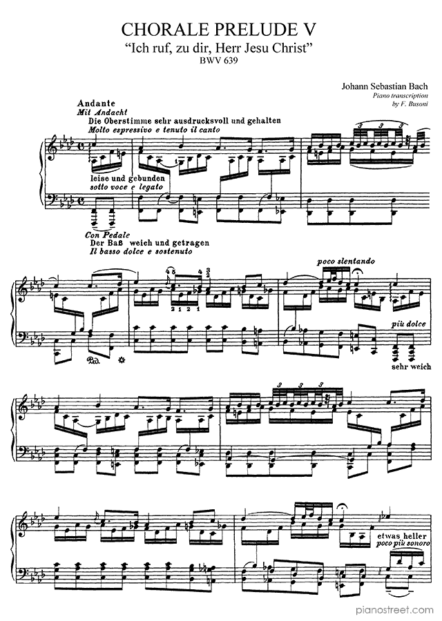 DOWNLOAD: Ferruccio Busoni - Bach: Chorale Prelude (BWV 639) No. 5 in F Minor ( from Transcriptions by Busoni). Piano sheet music to print immediately or to view in mobile devices.