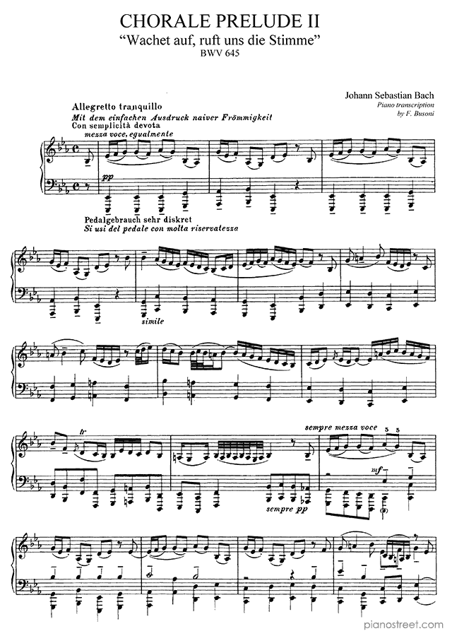 Busoni: Bach: Chorale Prelude (BWV 645) No. 2 in E-flat Major (published in 1909) . DOWNLOAD piano sheet music from Piano Street digital sheet music library.