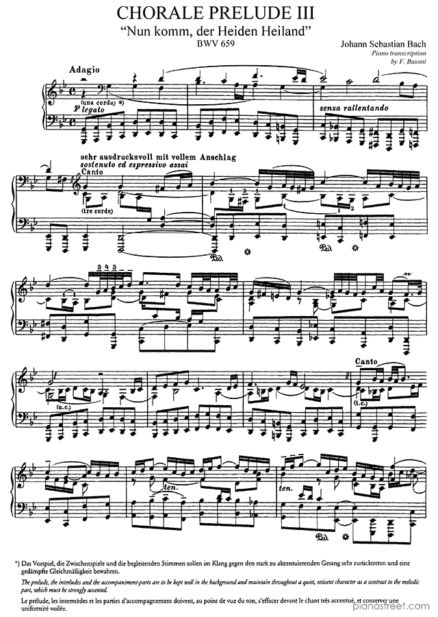 Bach: Chorale Prelude (BWV 659) in G Minor No. 3 by Ferruccio Busoni. Sheet music and recordings of thousands of piano pieces by Ferruccio Busoni and many other composers to view in digital devices, print or listen to.