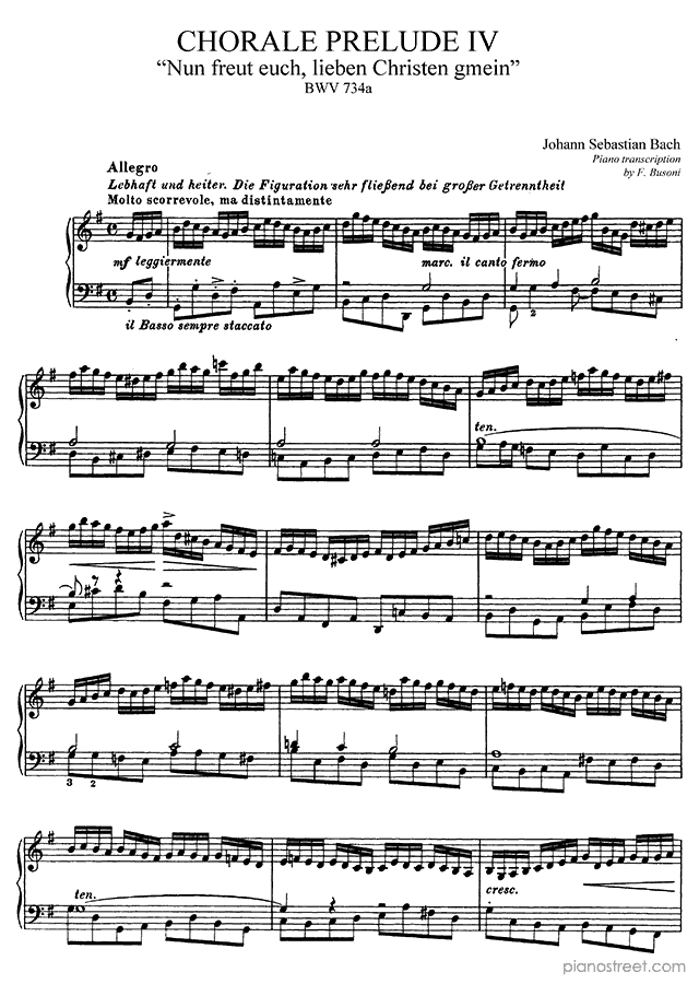 Bach: Chorale Prelude (BWV 734a) in G Major - No. 4 is a piano piece by the baroque composer Ferruccio Busoni who lived between the years 1866 and 1924.