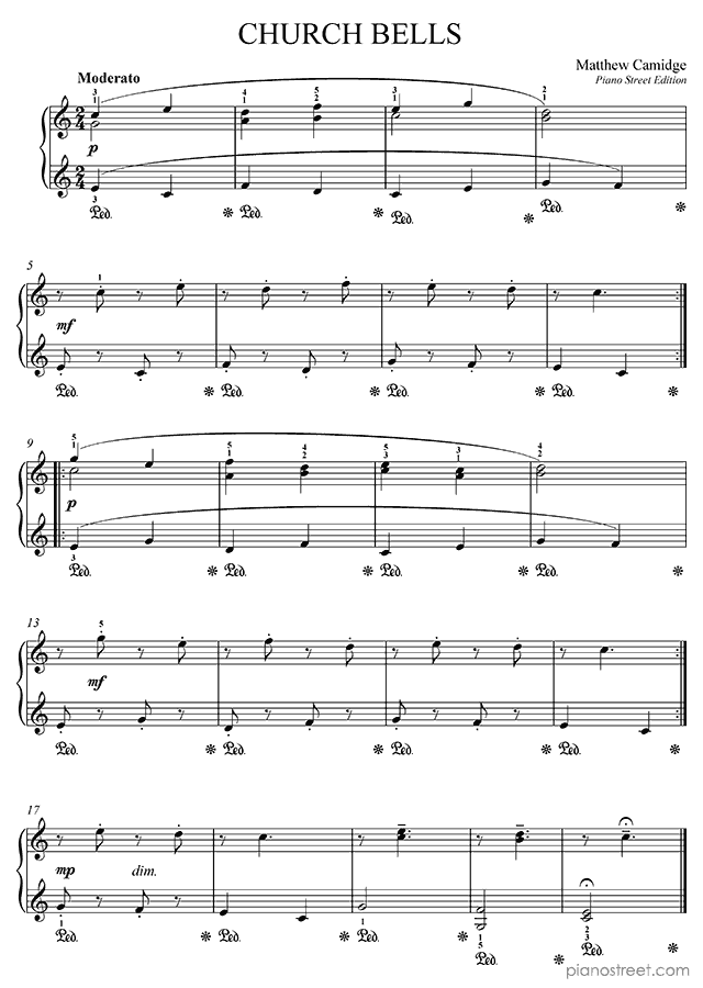Classical piano sheet music by Camidge to download: Church Bells in the key of This piece has difficulty level 1 in the category Piece