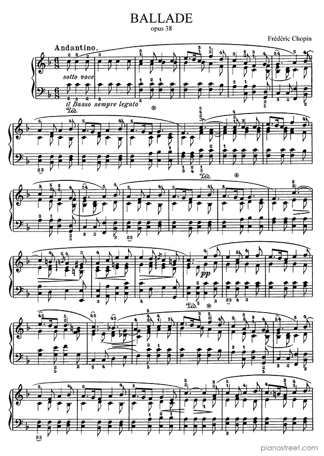 Ballade 2 in F Major Op. 38 by the composer Frédéric Chopin (1810-1849). This piano piece was composed in 1839 and is part of Chopin's Ballades.