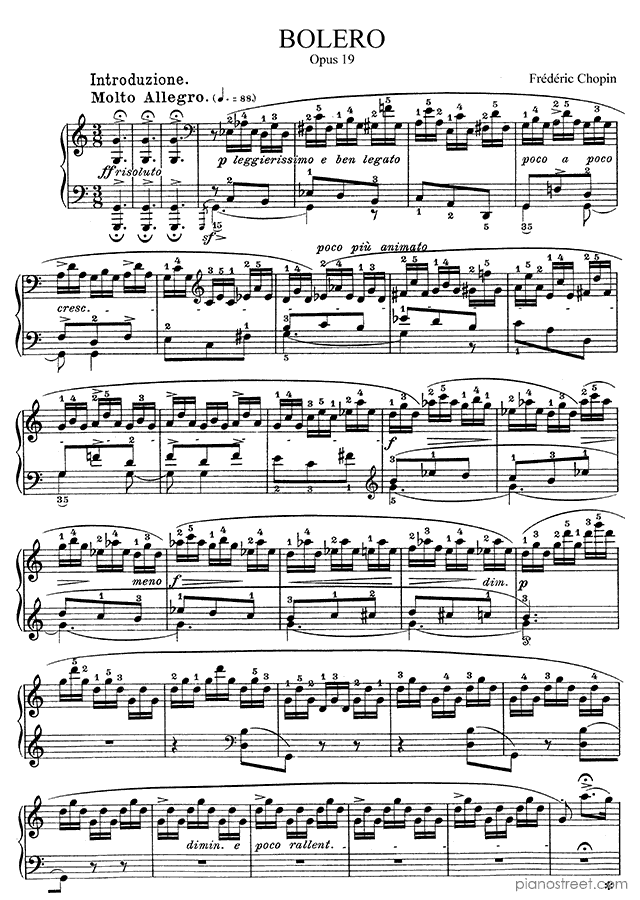 Downloadable piano sheet music by Frédéric Chopin to print: Bolero Op. 19 in C Major (published in 1833)