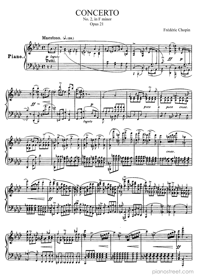 Piano Concerto 2 in F Minor - Op. 21 is a piece by the early romantic composer Frédéric Chopin.