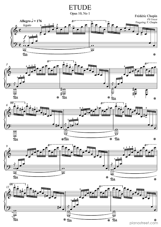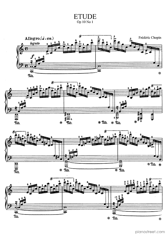 Etude Op. 10 No. 1 in C Major, a composition by the early romantic composer Frédéric Chopin. The piano score of this piece was first published in 1832 and is part of Etudes by Chopin.