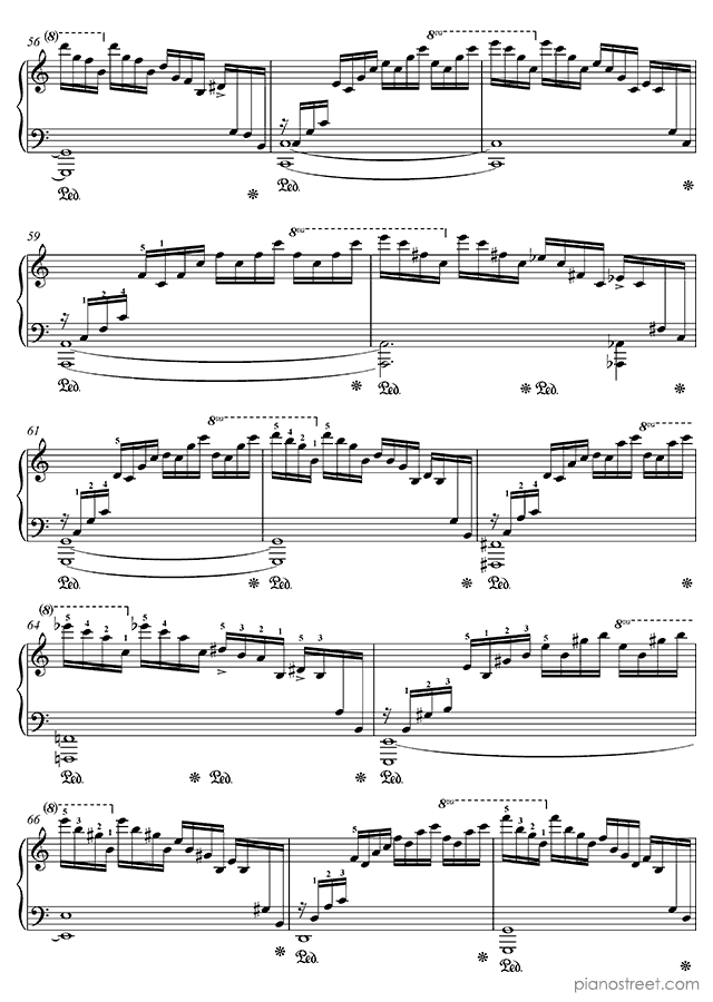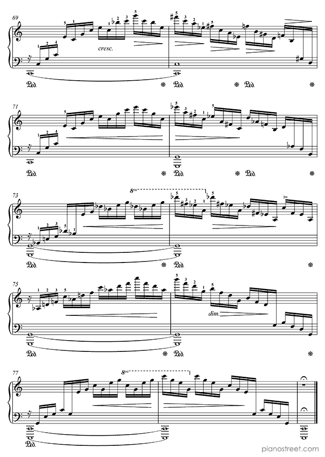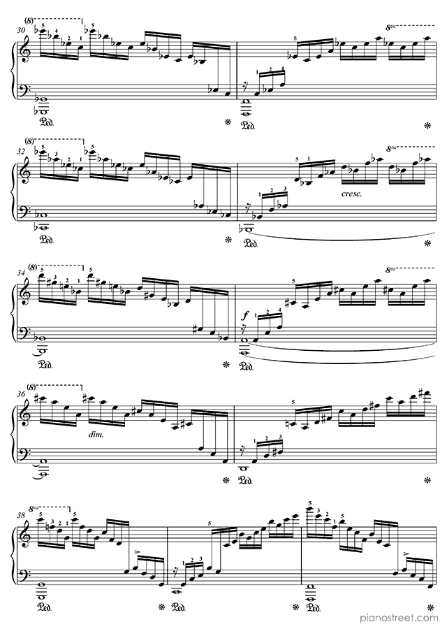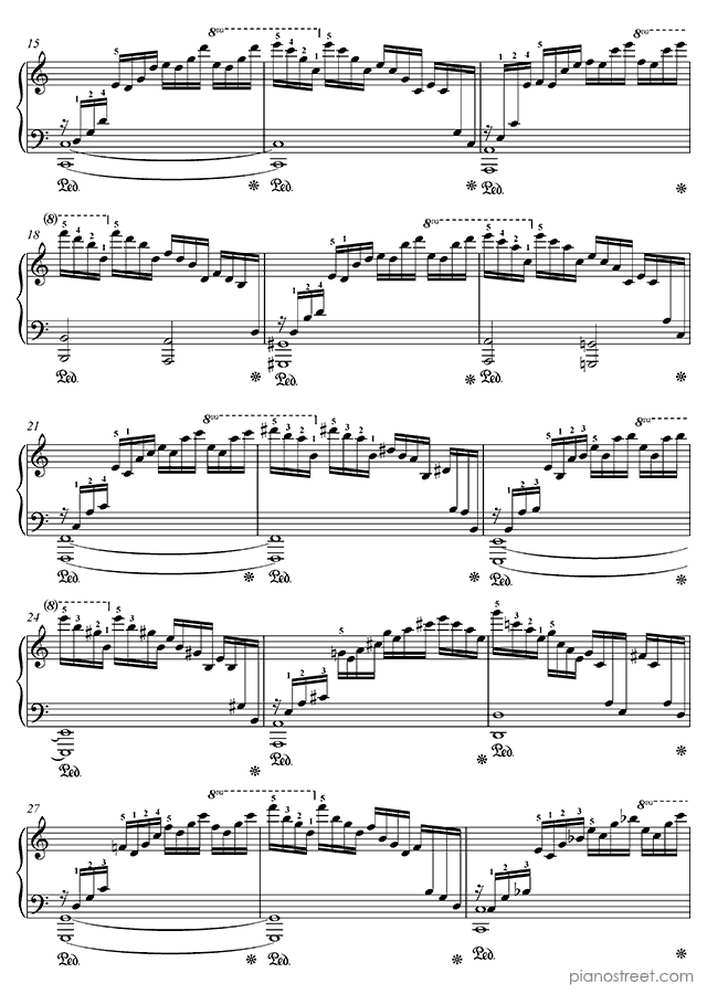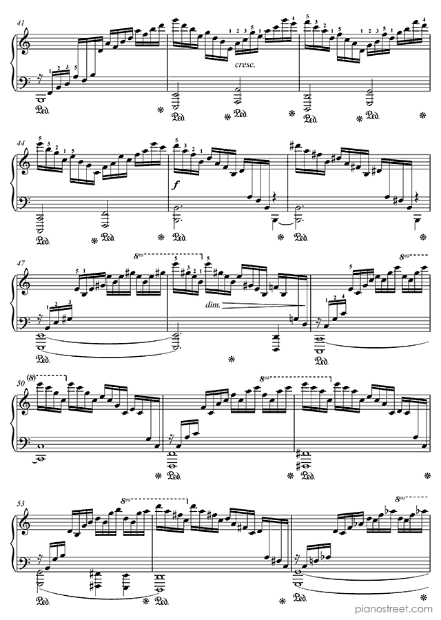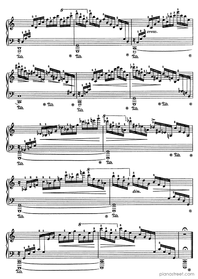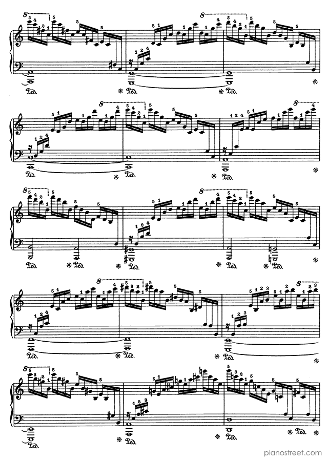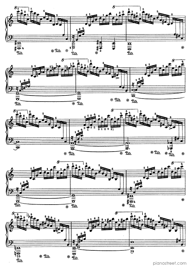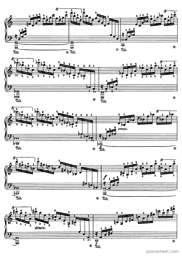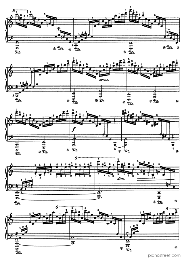 Because of its ceaseless cascading arpeggios – requiring an extremely well-oiled technique – this etude is sometimes referred to as the "Waterfall".