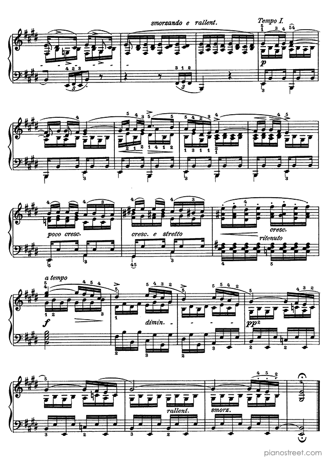Chopin famously said about this etude, nicknamed Tristesse: “In all my life I have never again been able to find such a beautiful melody.” When he played the piece for a student once, he reportedly burst into tears and cried "Oh, my homeland!" It's interesting to note that Chopin marked it at 100 beats per minute, which is quite a lot faster than most people play it nowadays.Forum posts about this piece: