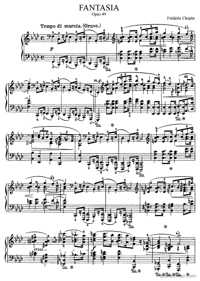 Fantasia in F Minor Op. 49 by the composer Frédéric Chopin (1810-1849). This piece is from the Early Romantic era and is part of Chopin's Miscellaneous pieces.