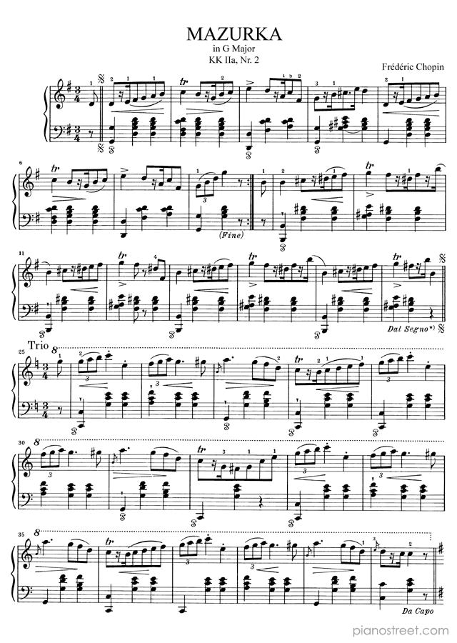 DOWNLOAD Mazurka KK IIa:2 in G Major Op. posth. by Frédéric Chopin (published in 1826) . High quality classical piano scores from the Piano Street sheet music library.