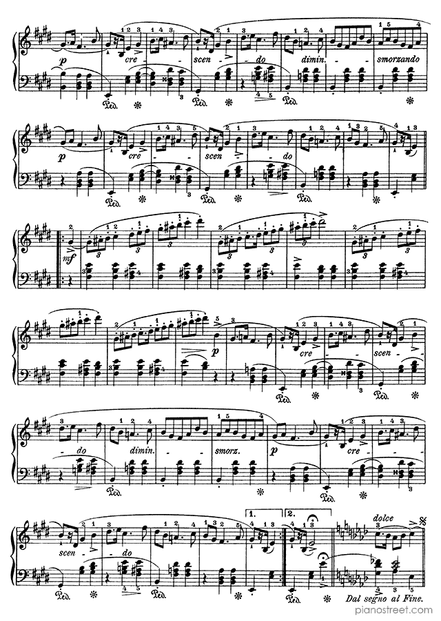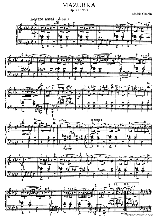 Downloadable piano sheet music from Mazurkas by Frédéric Chopin to print: Mazurka Op. 17 No. 3 in A-flat Major