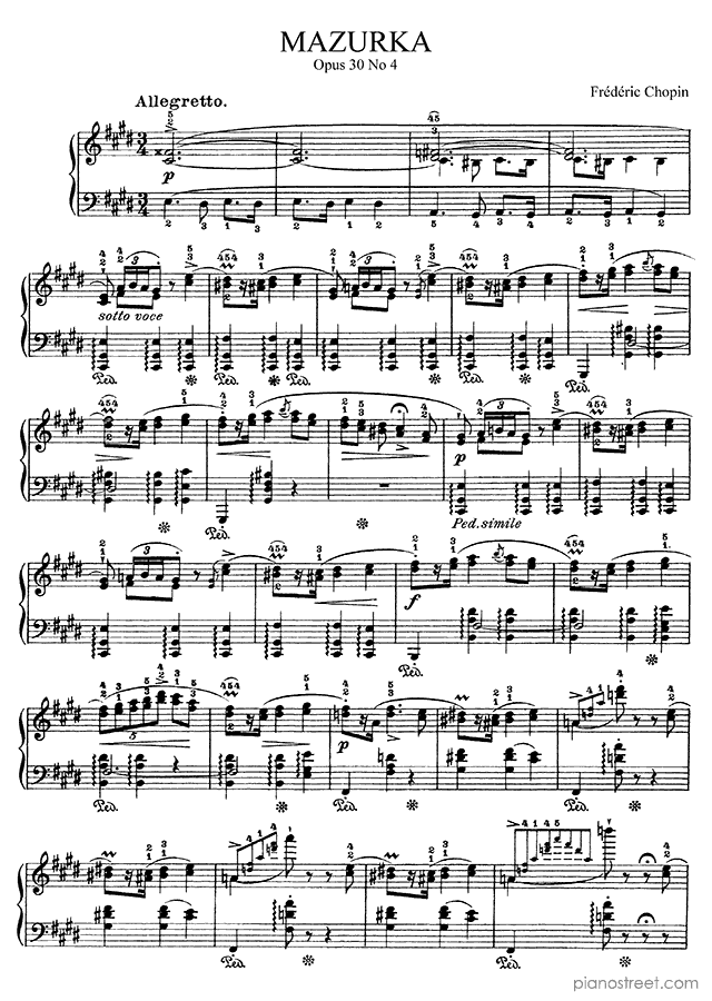 DOWNLOAD Mazurka in C-sharp Minor Op. 30 No. 4 by Frédéric Chopin. High quality classical piano scores from the Piano Street sheet music library.