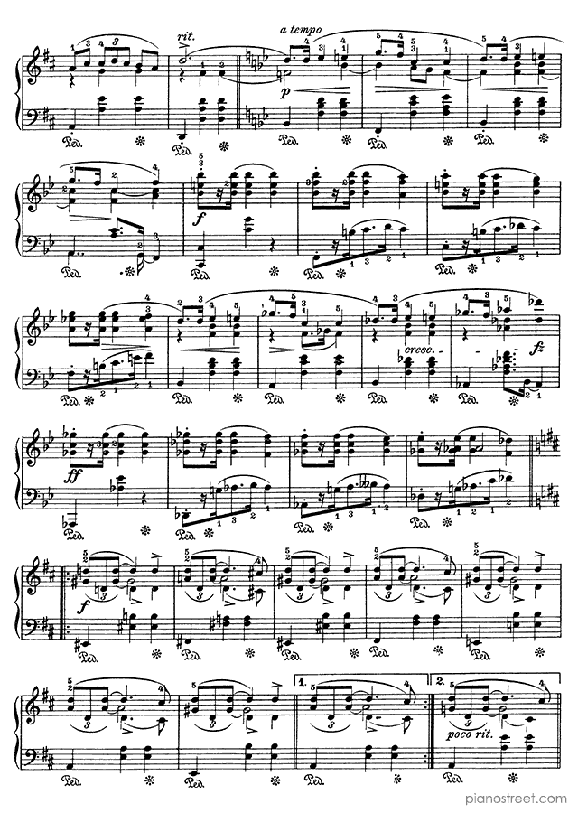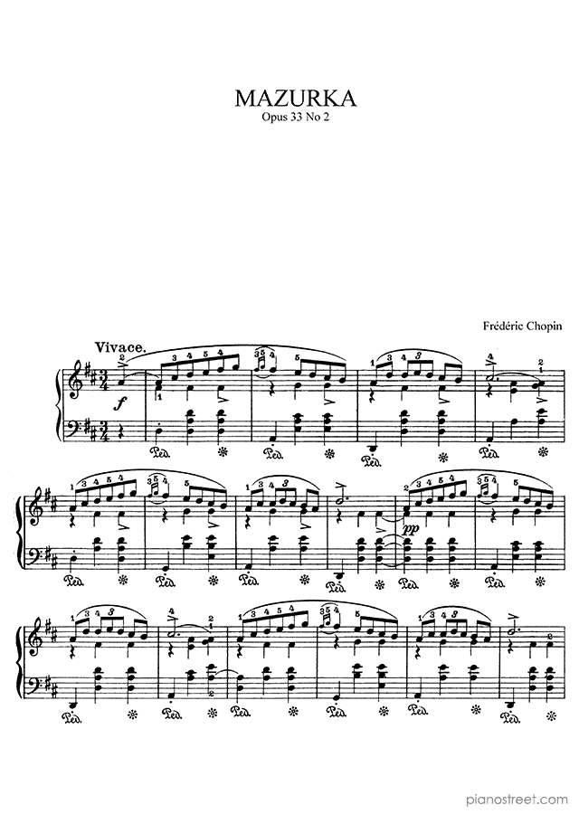 Classical piano sheet music by Chopin to download: Mazurka Op. 33 No. 2 in the key of This piece has difficulty level 8 in the category Piece