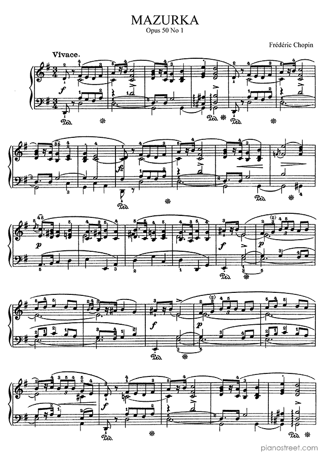 DOWNLOAD: Frédéric Chopin - Mazurka Op. 50 No. 1 in G Major ( from Mazurkas by Chopin). Piano sheet music to print immediately or to view in mobile devices.
