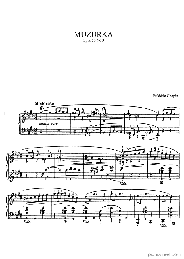 Downloadable piano sheet music from Mazurkas by Frédéric Chopin to print: Mazurka Op. 50 No. 3 in C-sharp Minor