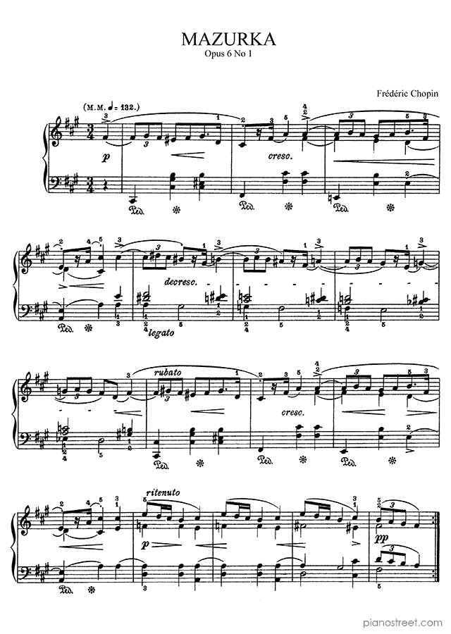 DOWNLOAD Mazurka in F-sharp Minor Op. 6 No. 1 by Frédéric Chopin. High quality classical piano scores from the Piano Street sheet music library.