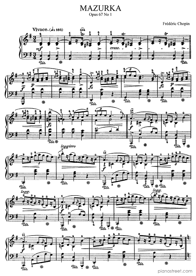 DOWNLOAD Mazurka in G Major Op. 67 No. 1 by Frédéric Chopin. High quality classical piano scores from the Piano Street sheet music library.