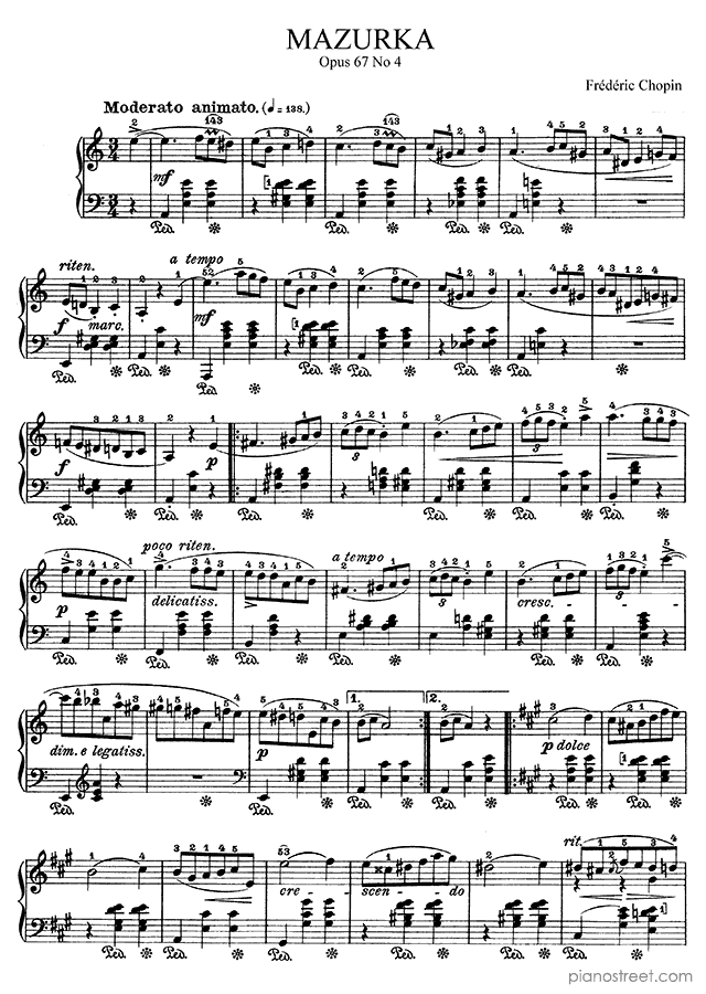 Early Romantic piano sheet music by Frédéric Chopin to download and print instantly: Mazurka Op. 67 No. 4 in the key of . Level 7, compositional type: Piece