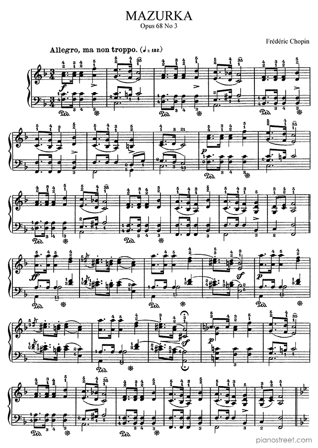 Chopin: Mazurka Op. 68 No. 3 in F Major . DOWNLOAD piano sheet music from Piano Street digital sheet music library.