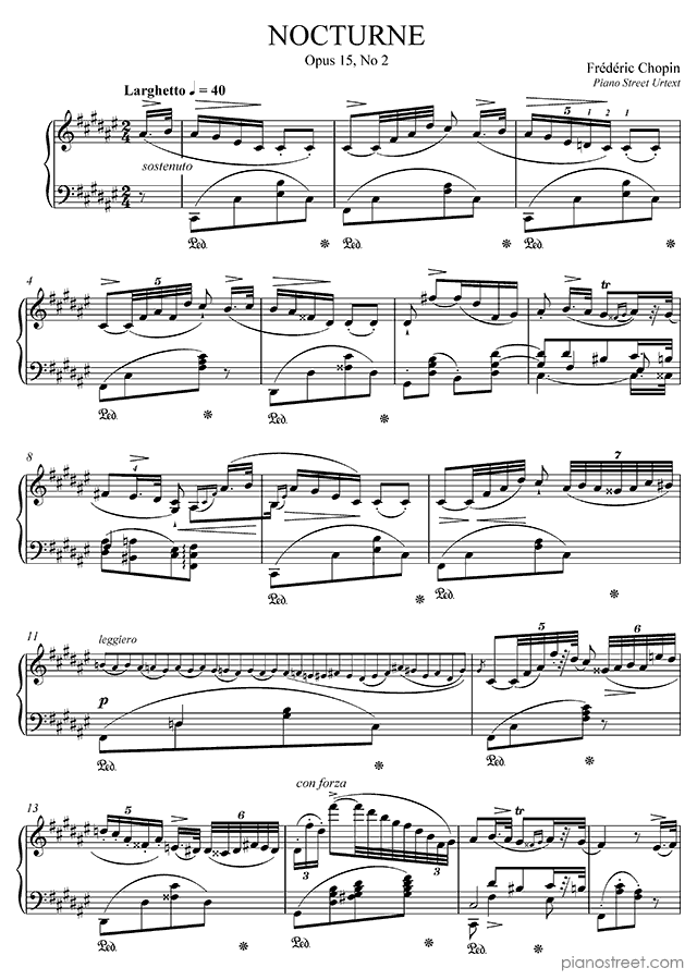 DOWNLOAD: Frédéric Chopin - Nocturne Op. 15 No. 2 in F-sharp Major ( from Nocturnes by Chopin). Piano sheet music to print immediately or to view in mobile devices.