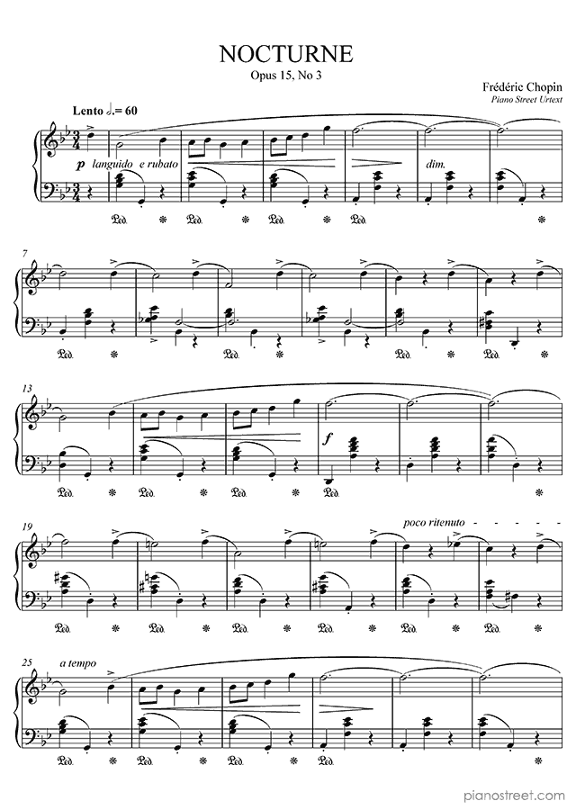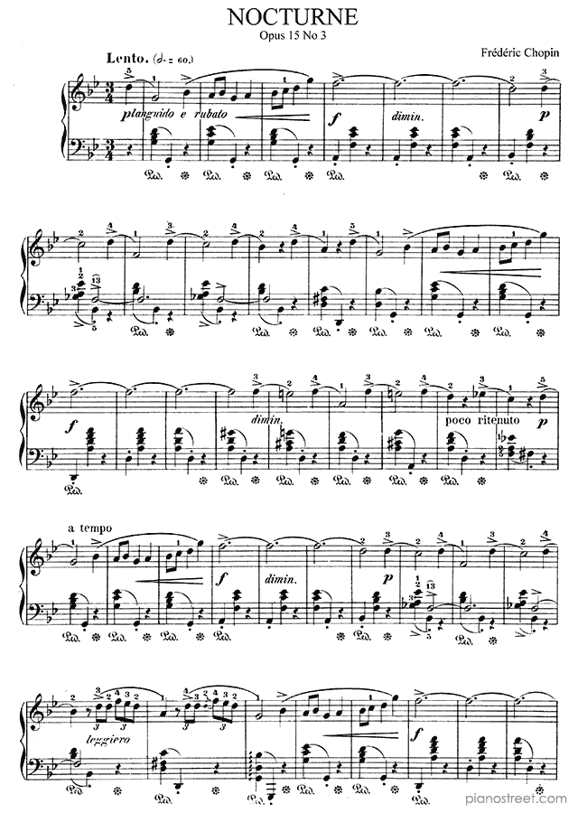 DOWNLOAD Nocturne in G Minor Op. 15 No. 3 by Frédéric Chopin (published in 1834) . High quality classical piano scores from the Piano Street sheet music library.