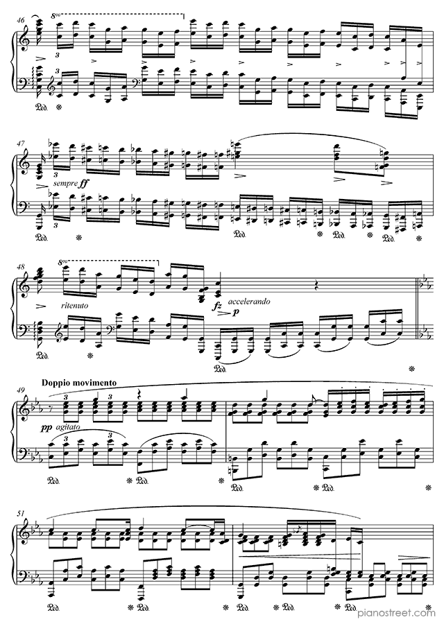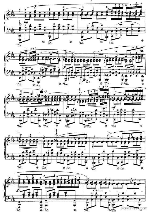 The c minor Nocturne is one of the more technically difficult Nocturnes. The octave passages in the middle section, while not of Lisztian difficulty, are challenging, and the final episode requires a well-developed chord technique with good control over voicing.