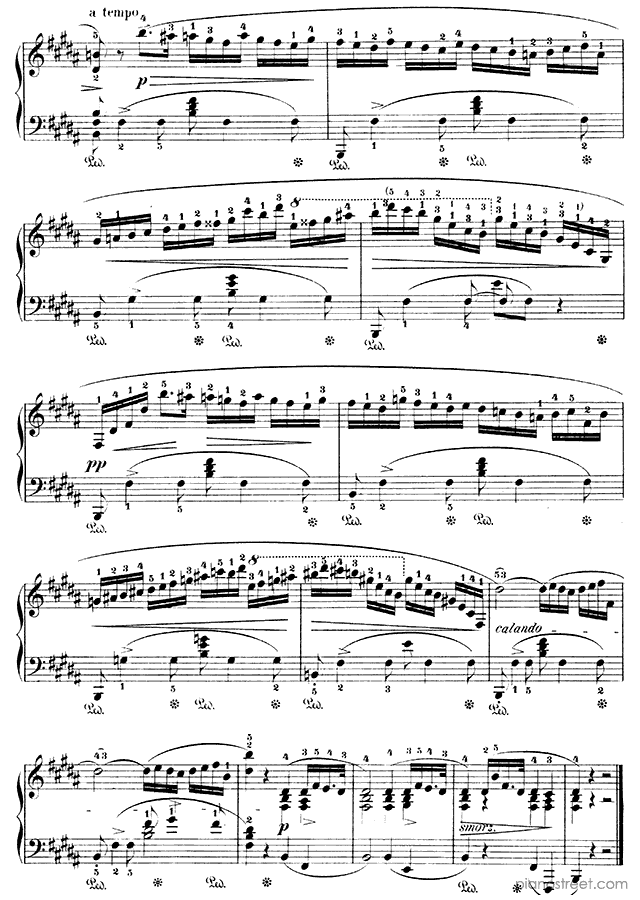 Hiding its mysteries behind a reserved surface, this Nocturne is famed for its beautiful embellishments and multiple-bar-long trills.