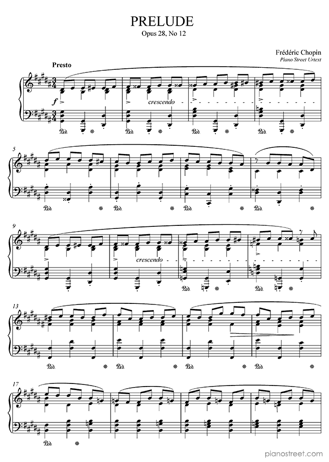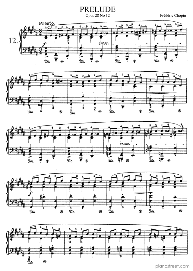 Chopin: Prelude Op. 28 No. 12 in G-sharp Minor (published in 1834) . DOWNLOAD piano sheet music from Piano Street digital sheet music library.