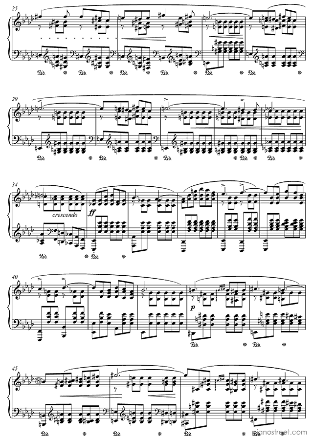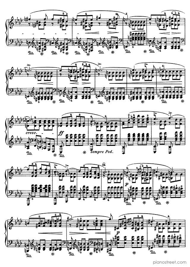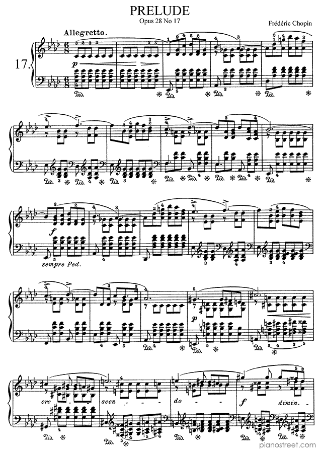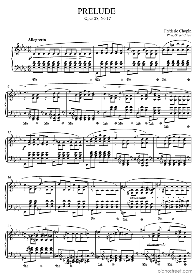 Downloadable piano sheet music from Preludes by Frédéric Chopin to print: Prelude Op. 28 No. 17 in A-flat Major (published in 1834)