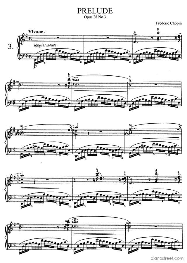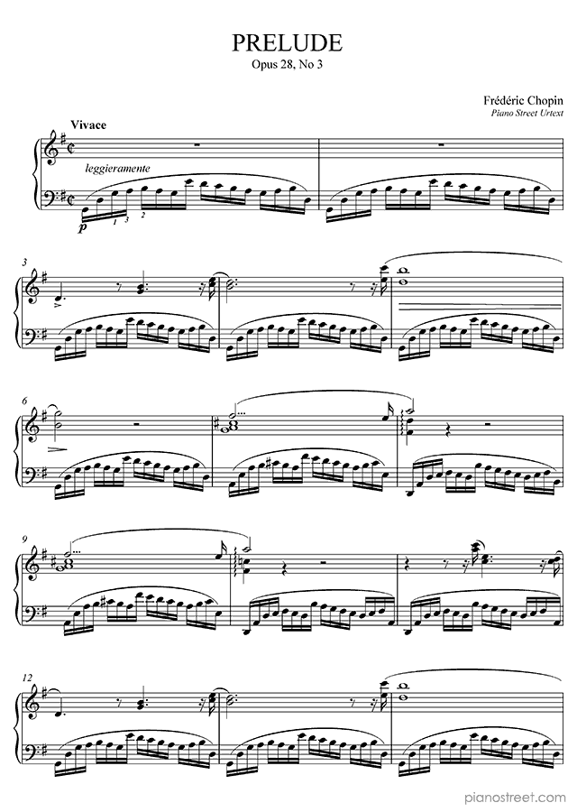 Prelude in G Major - Op. 28 No. 3 is a piece by the early romantic composer Frédéric Chopin.