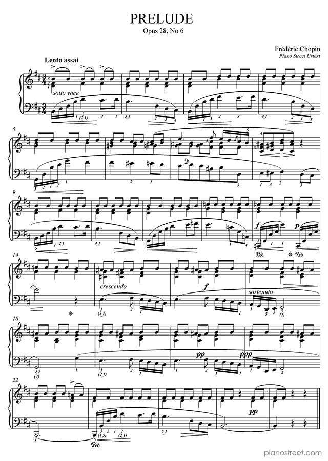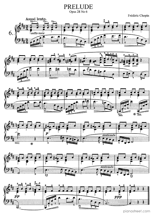Frédéric Chopin, one of the prominent composers active in the Early Romantic era, has written this piece titled Prelude Op. 28 No. 6 in B Minor from Preludes. The composition is categorized as "Piece" in Piano Street's sheet music library and the level of difficulty is 6.
