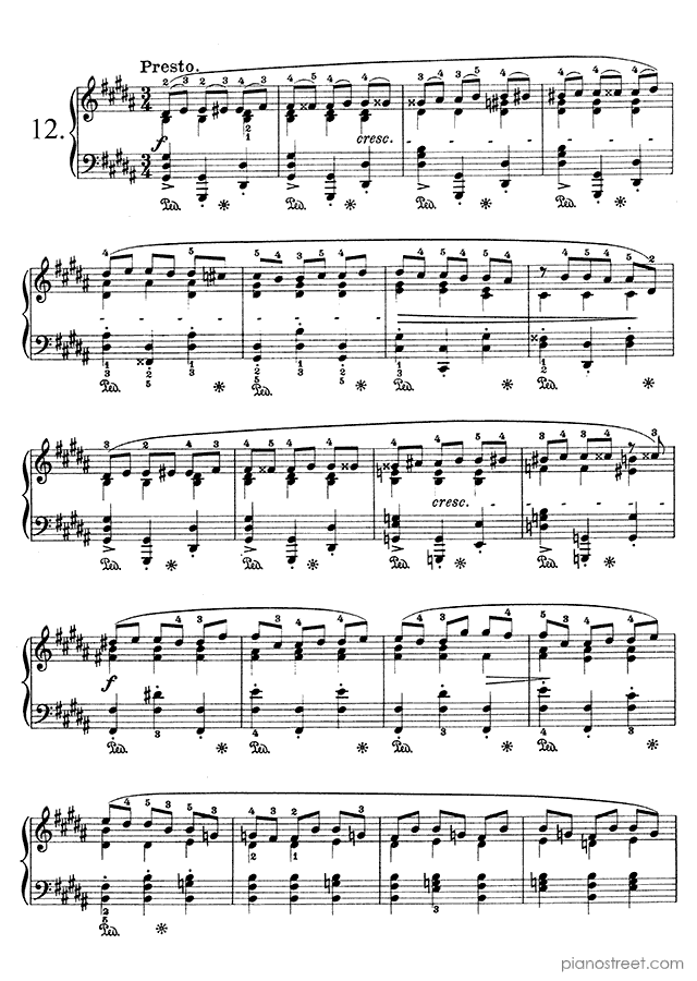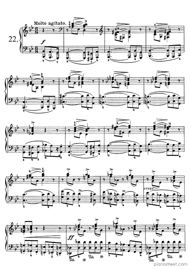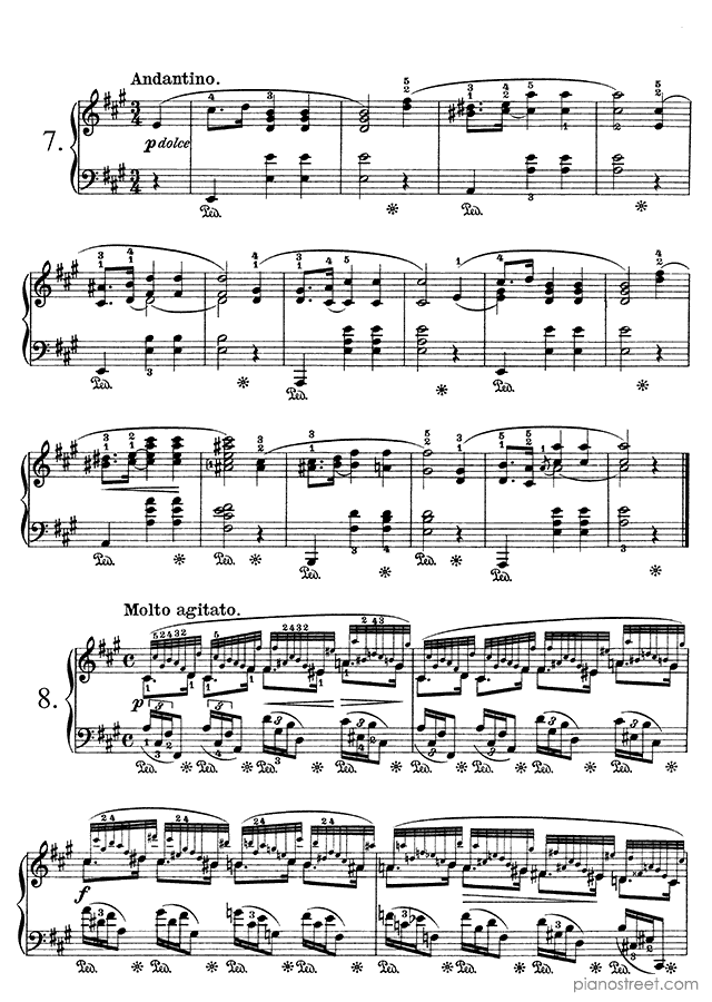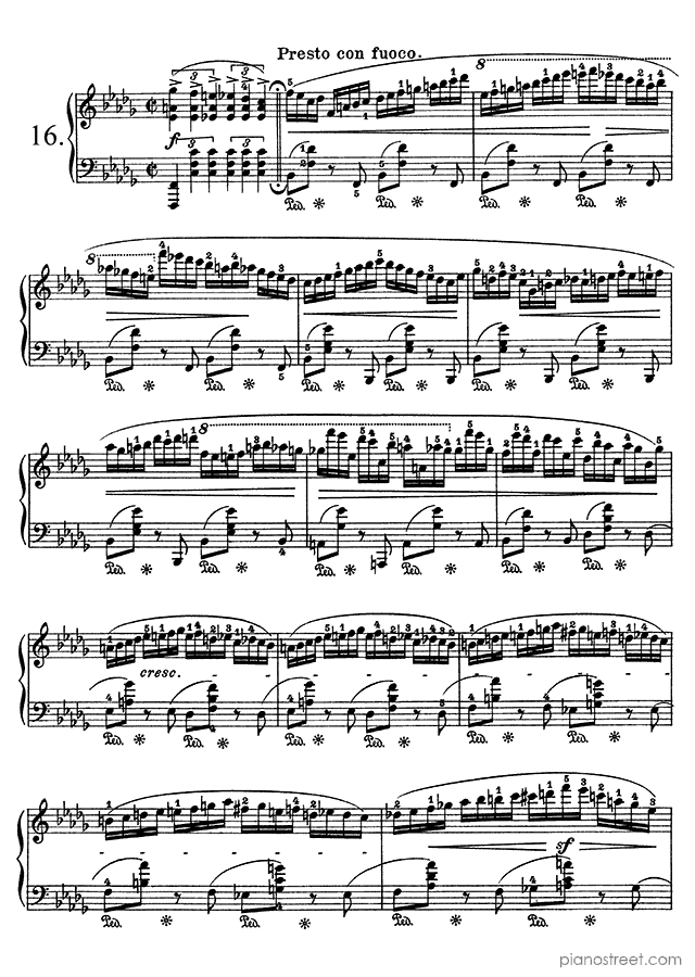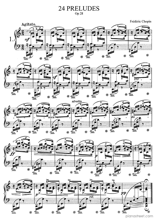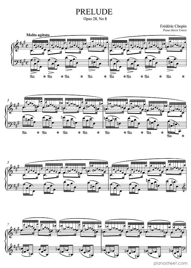 Prelude Op. 28 No. 8 in F-sharp Minor, a composition by the early romantic composer Frédéric Chopin who was born in 1810 and died in 1849. The piano score of this piece was first published in 1834 and is part of Chopin's Preludes.