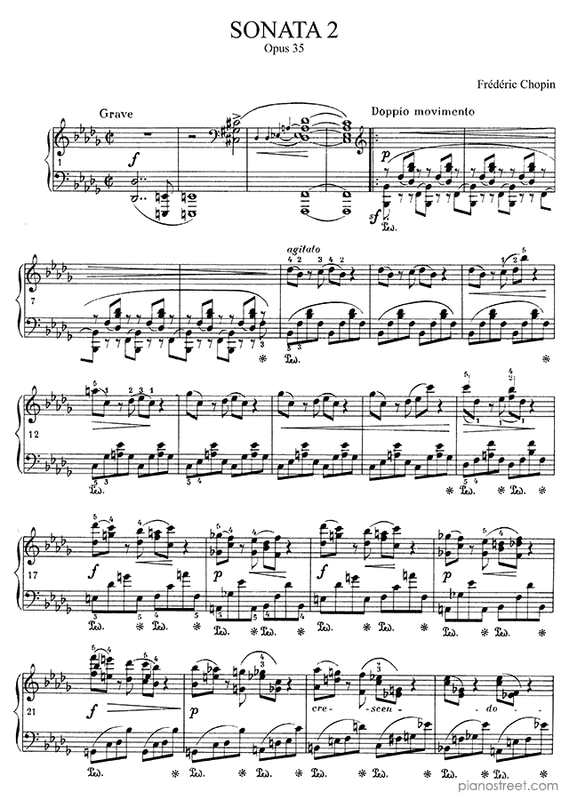 Sonata 2 Op. 35 in B-flat Minor, a composition by the early romantic composer Frédéric Chopin who was born in 1810 and died in 1849. The piano score of this piece was first published in 1837 and is part of Chopin's Sonatas.