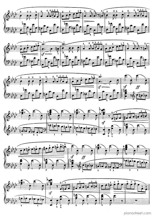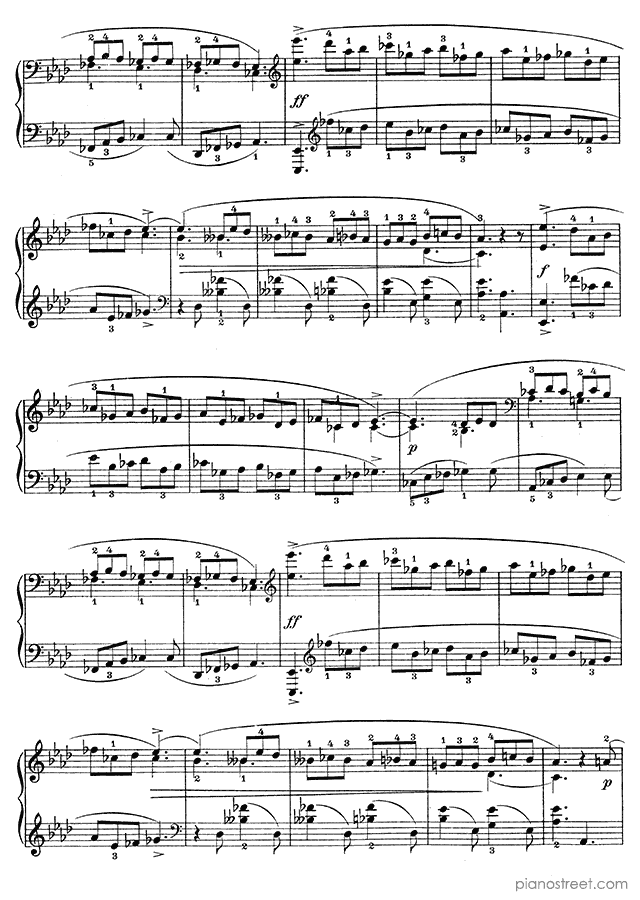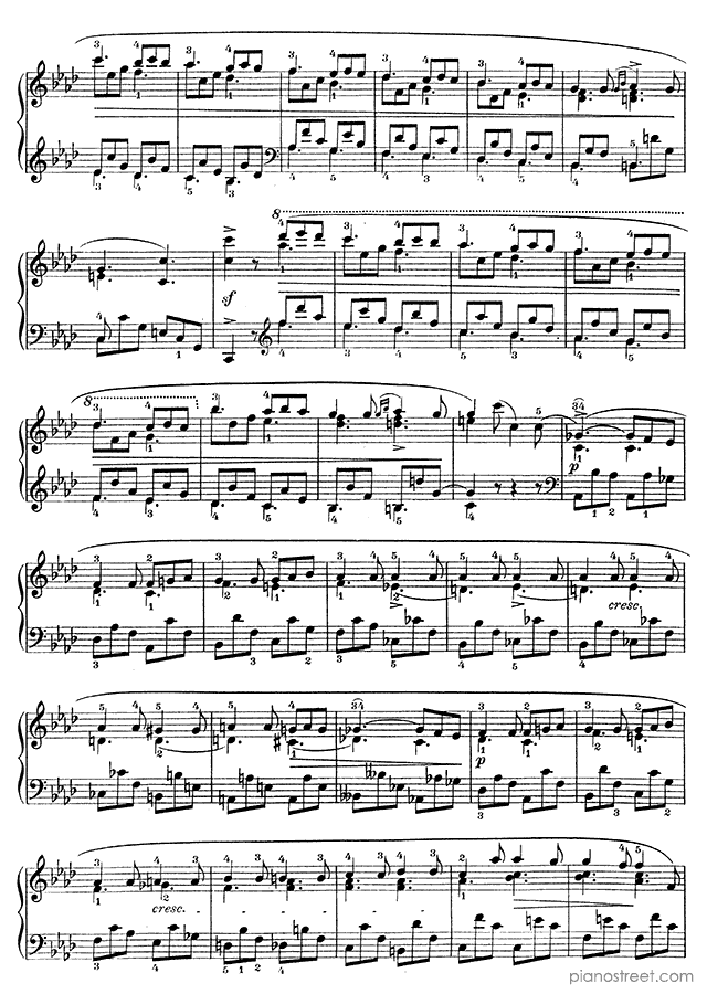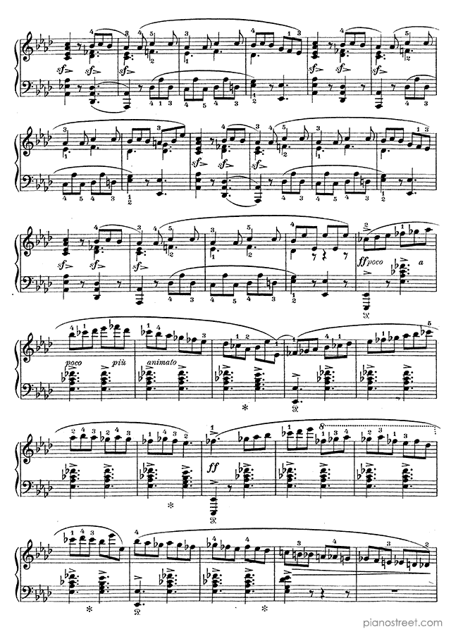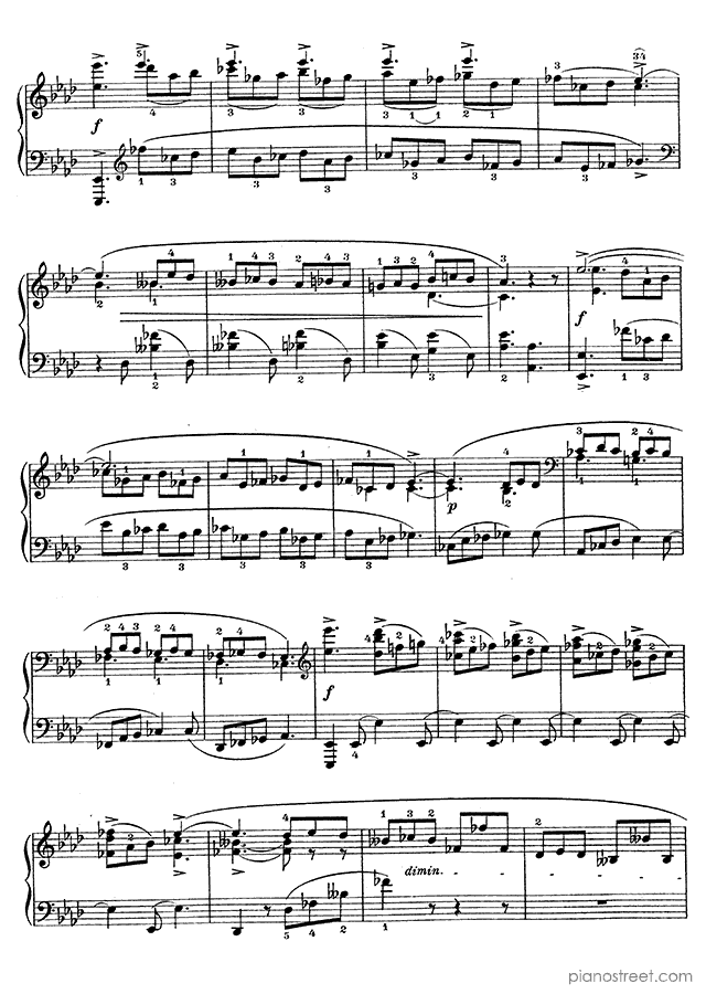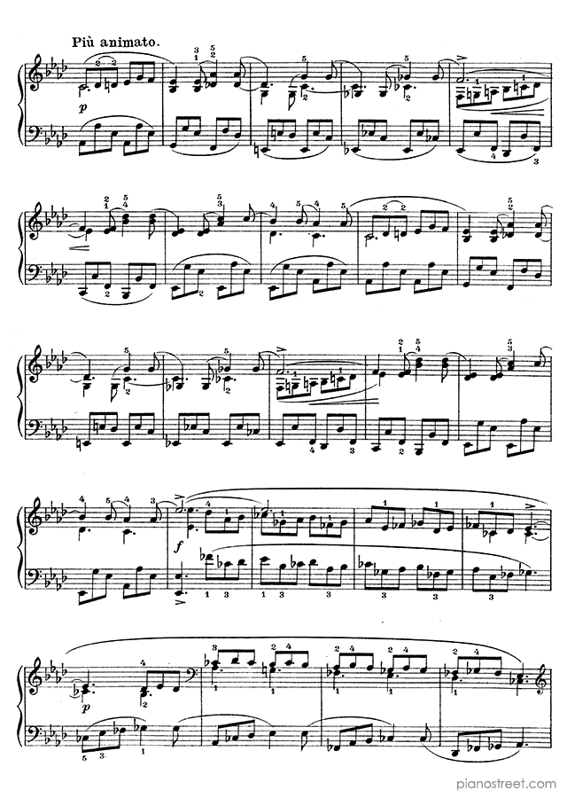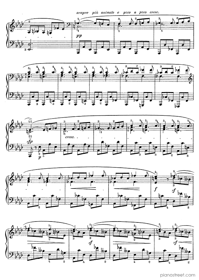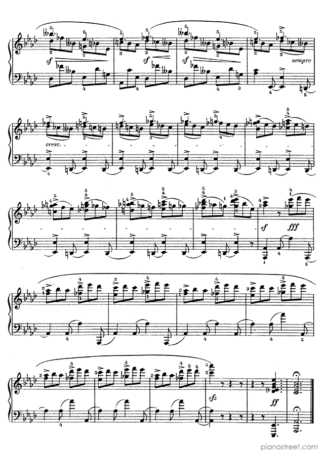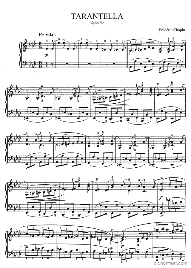 Piano sheet music downloads and recordings. This piece is by Frédéric Chopin: Tarantella Op. 43 in A-flat Major (published in 1841) . Level 8+, Period: Early Romantic