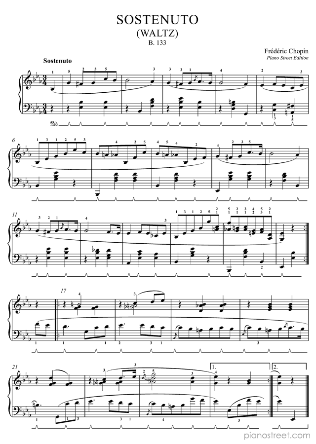 DOWNLOAD Sostenuto in E-flat Major B. 133 by Frédéric Chopin (published in 1840) . High quality classical piano scores from the Piano Street sheet music library.