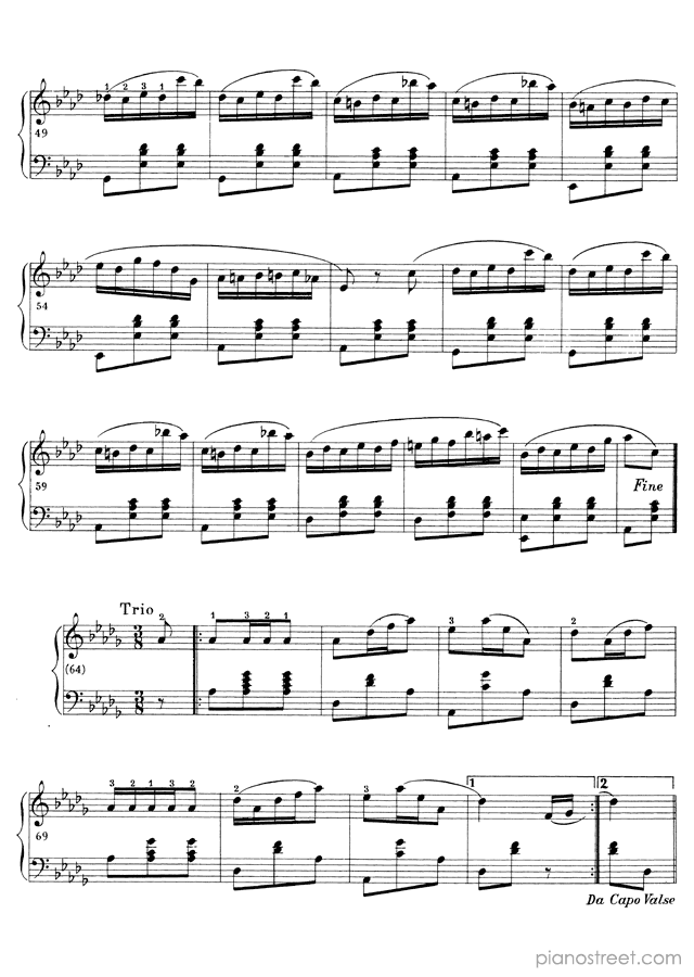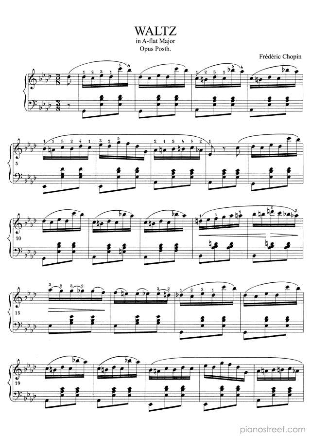Downloadable piano sheet music from Waltzes by Frédéric Chopin to print: Waltz Op. posth. in A-flat Major (published in 1827)