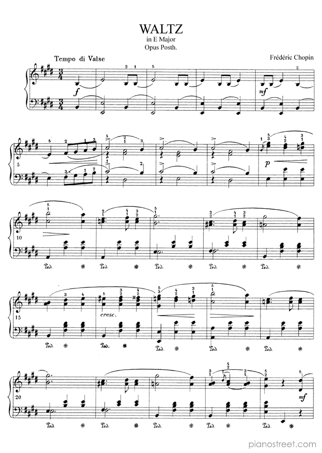 Waltz in E Major, Op. posth. by the composer Frédéric Chopin who lived from 1810 to 1849.
